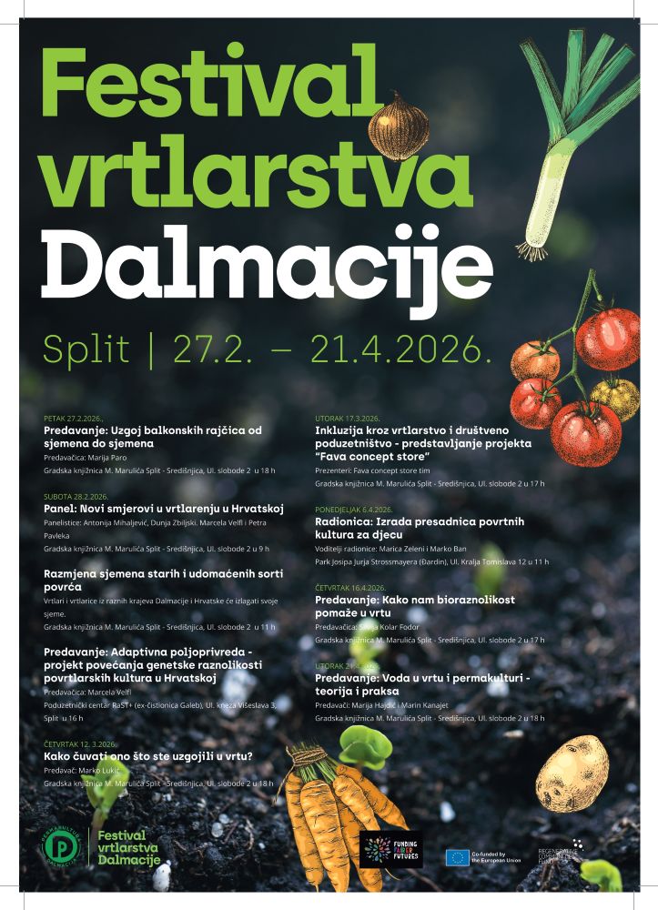 Stručnjaci iz raznih krajeva Dalmacije i Hrvatske dijelit će svoja znanja iskustva kako bi vas inspirirali i motivirali za novu vrtlarsku sezonu. Bez obzira imate li veliki povrtnjak ili samo jednu teglicu na prozoru, na Festivalu ćete sigurno pronaći nešto za sebe', istaknuli su organizatori.