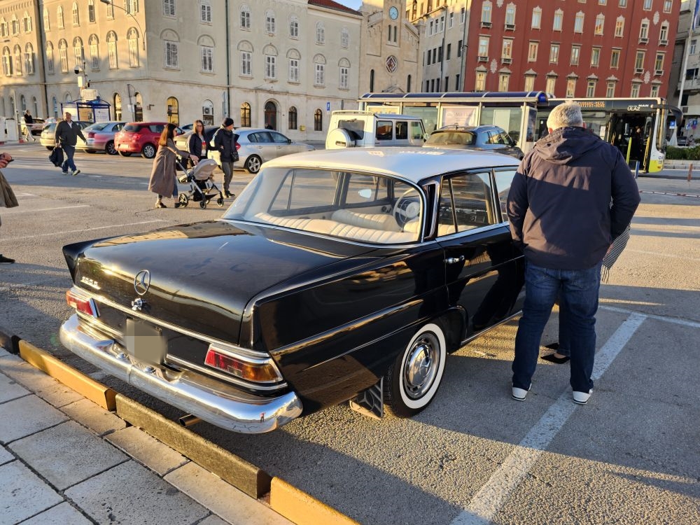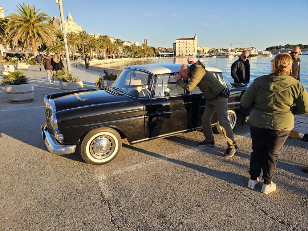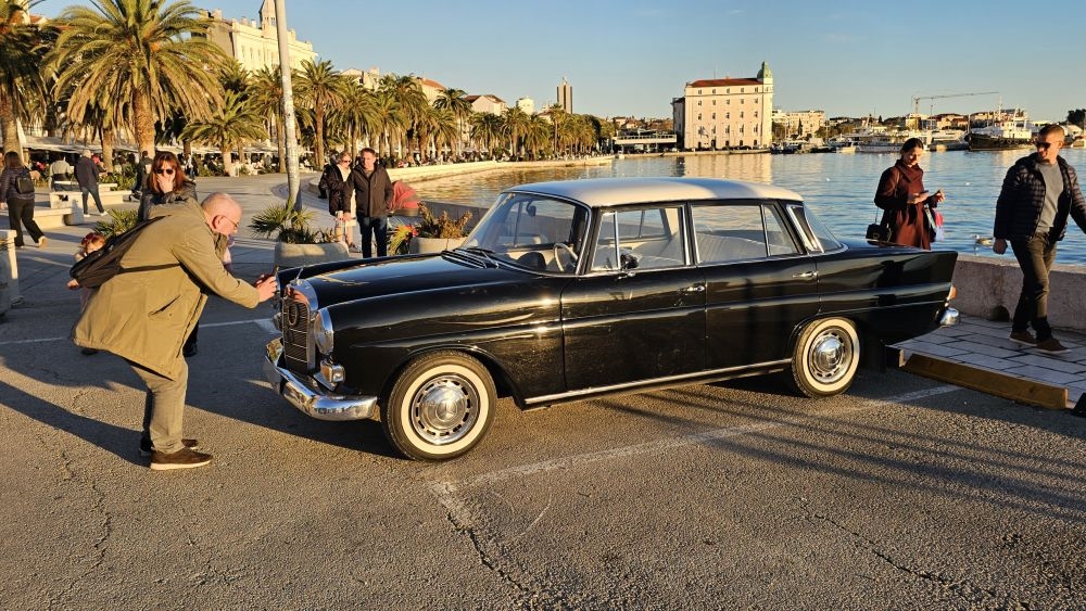 Mercedes Oldtimer 200D parkiran danas u podnevnim satima na parkiralištu na splitskoj Rivi privukao je iznimnu pažnju prolaznika, potvrđujući da klasični automobili i dalje izazivaju veliko zanimanje. Iako se na istom mjestu ranije moglo vidjeti moderne luksuzne modele poput Lamborghinija ili Porschea, ovaj je Mercedes izazvao veći interes.