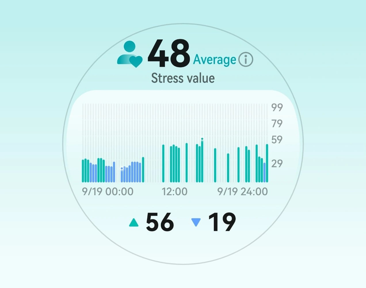 Huawei Watch GT 6 koristi novu TruSense tehnologiju za precizno mjerenje razine stresa. Sat kontinuirano prati varijabilnost otkucaja srca (HRV), procjenjuje vaše emocionalno stanje i, kad otkrije visoku razinu stresa, nudi trenutna rješenja. Nudi vam vođene vježbe disanja i mindfulness pauze.