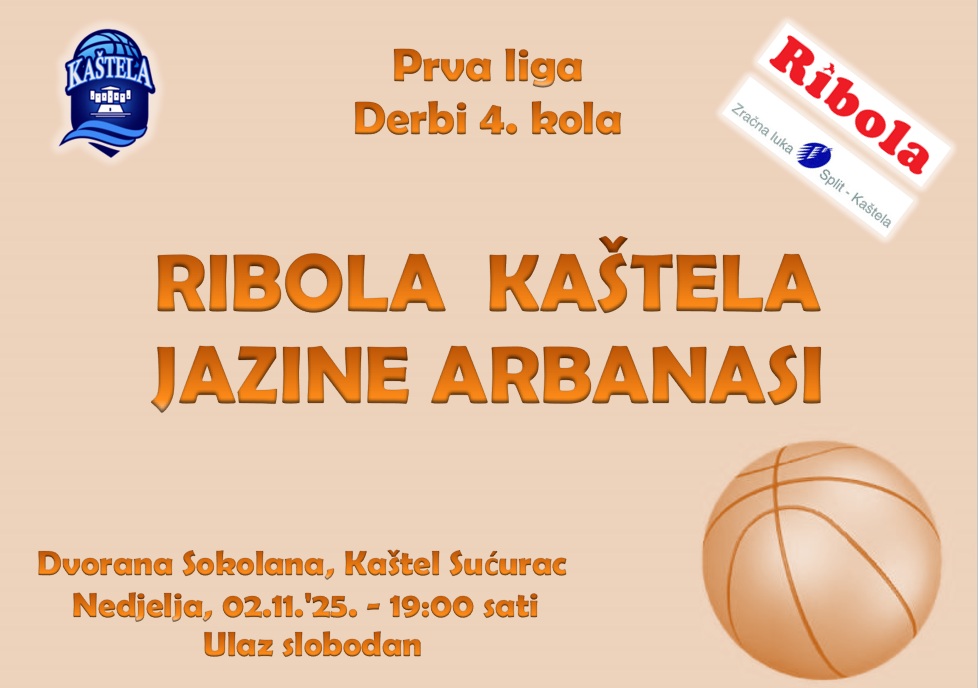 U nedjelju, sa početkom u 19 sati, seniorska momčad košarkaškog kluba Ribole Kaštela na svom terenu igra utakmicu 4. kola Prve lige u kojoj dočekuje starog rivala, zadarsku momčad Jazine Arbanasi.