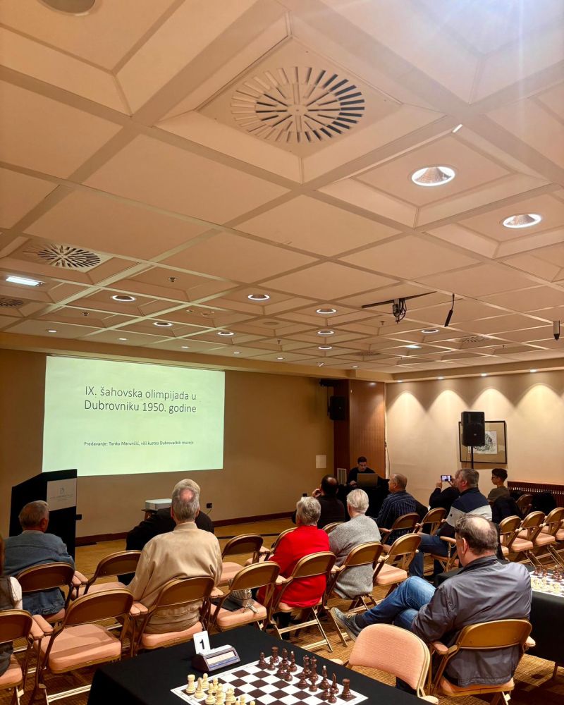 Prezentaciju o Šahovskoj olimpijadi 1950. održao je Tonko Marunčić, viši kustos Dubrovačkih muzeja, koji je sudionicima približio niz manje poznatih činjenica, detalja i zanimljivosti vezanih uz samu Olimpijadu. Sudionik ratnog turnira iz 1991., Sulejman Islamović, prisjetio se ozračja toga vremena, uvjeta u kojima se igralo te zajedništva i poruke koju je taj turnir poslao u jednim od najtežih dana za Grad.