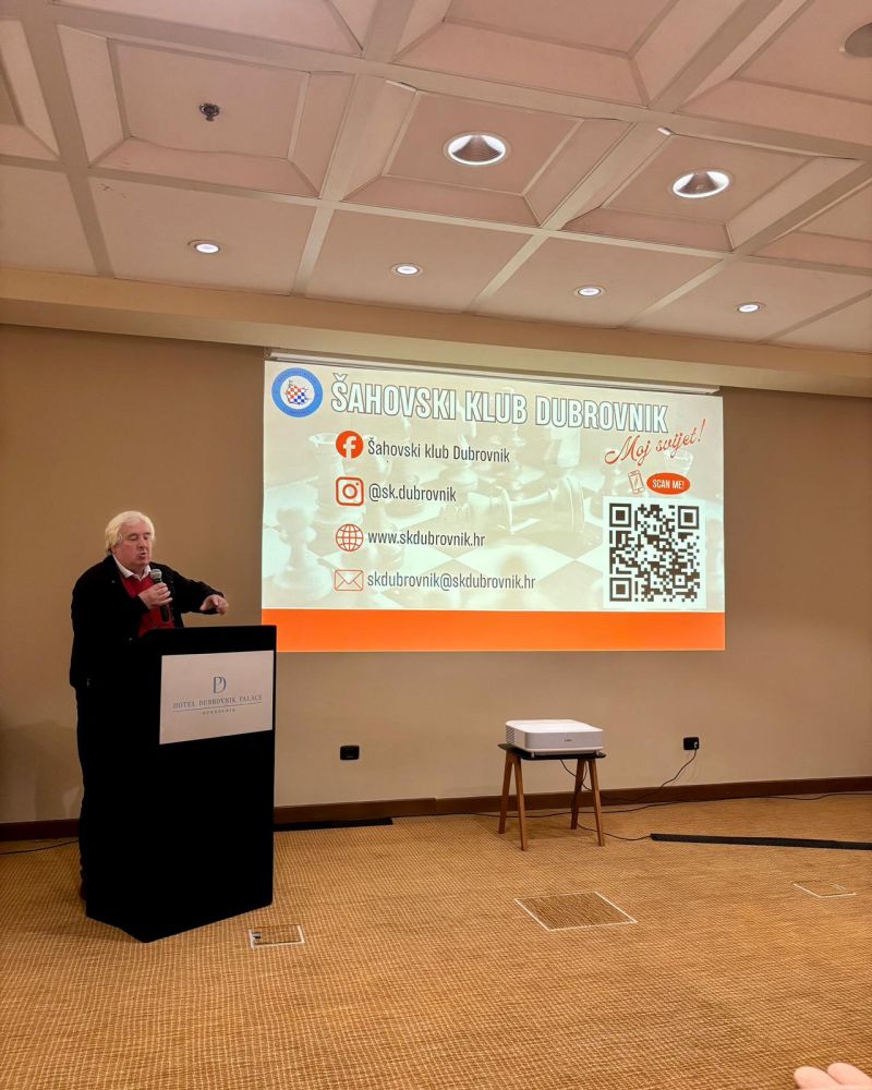 Šahovski klub Dubrovnik upućuje iskrenu zahvalu Tonku Marunčiću i Sulejmanu Islamoviću, koji su svojim izlaganjima publici približili povijesnu Šahovsku olimpijadu i ratni turnir 'Voda, kruh i mlijeko'.
