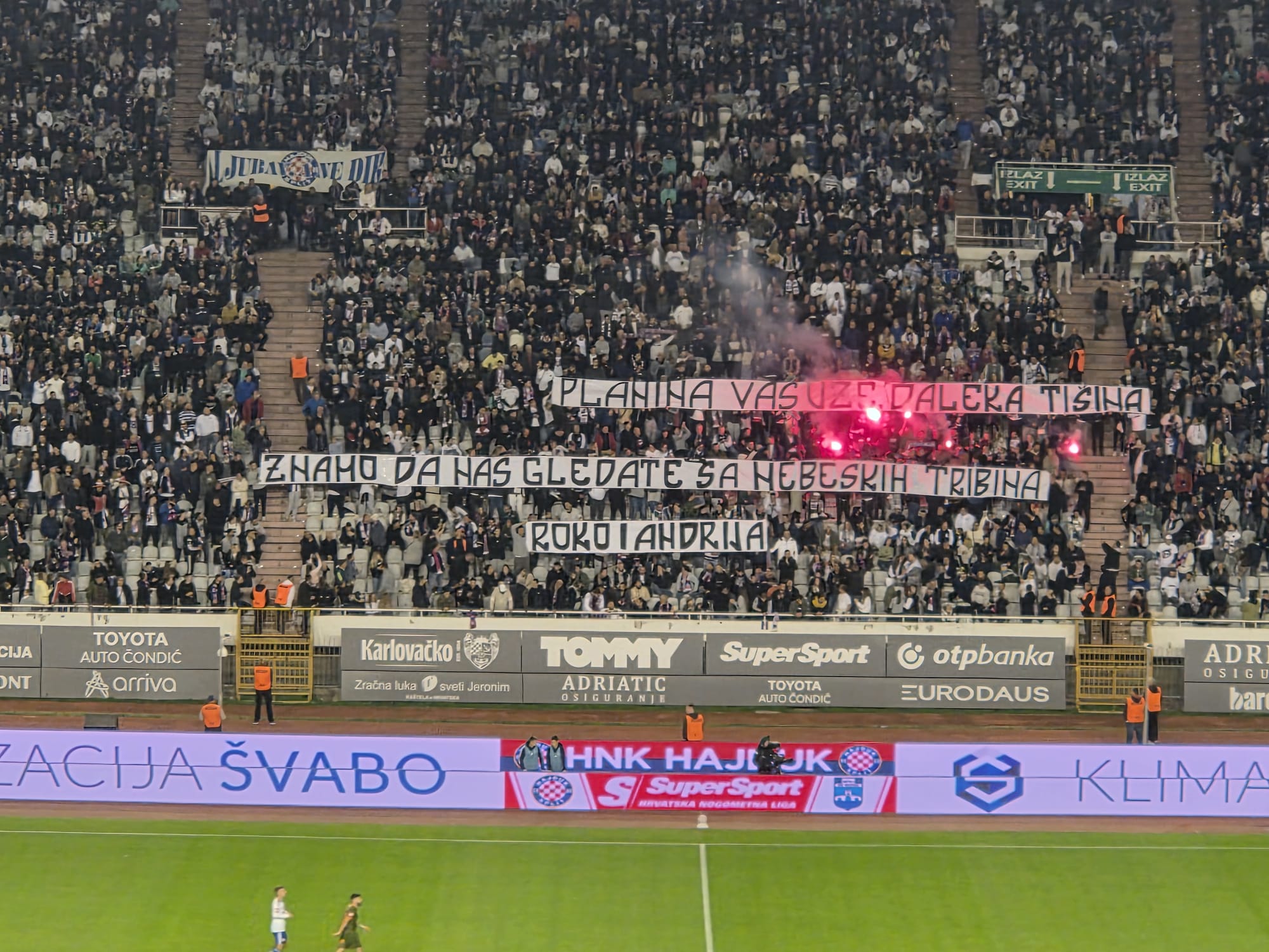 'Planina vas uze. Daleka tišina. Znamo da nas gledate s nebeskih tribina. Roko i Andrija', razvučeno je preko tribina.