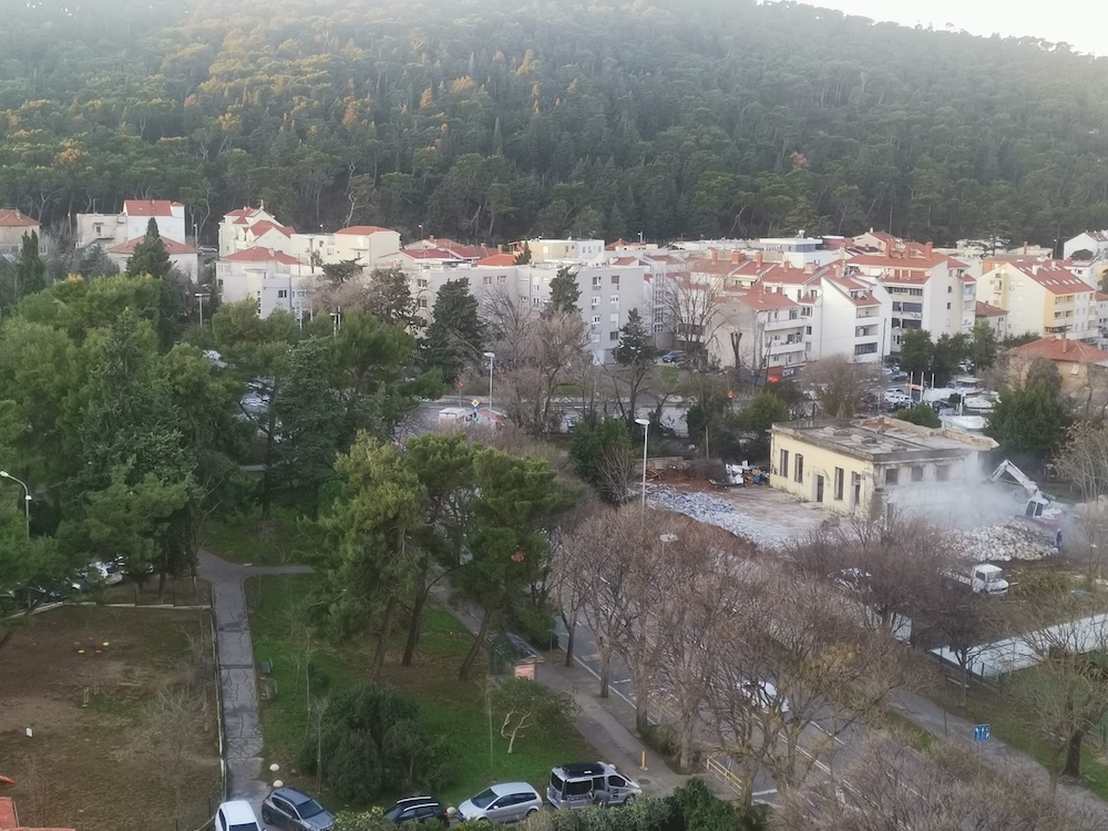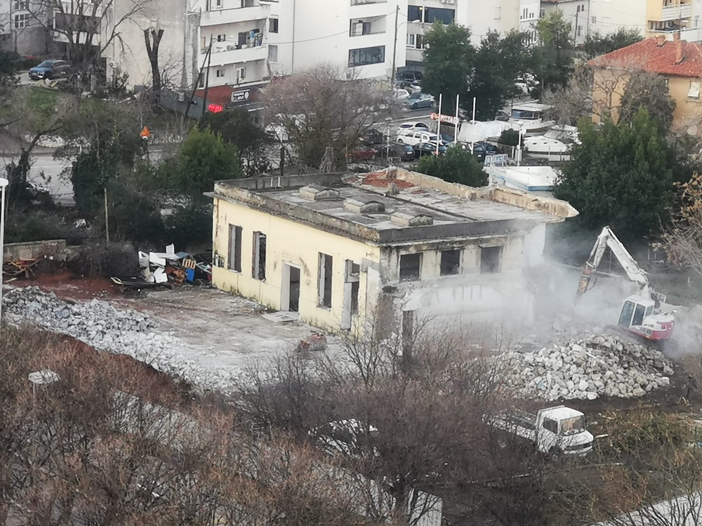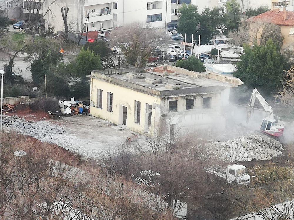 Kako doznajemo od investitora Božidara Giljanovića iz tvrtke In Continuo, zgrada je srušena jer je bila u katastrofalnom stanju i prijetila je opasnost da se uruši. Na njenom mjestu podignut će se objekt istih gabarita, a uredit će se i parking s nekih 30 parkirališnih mjesta.