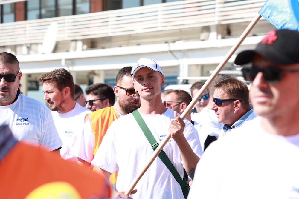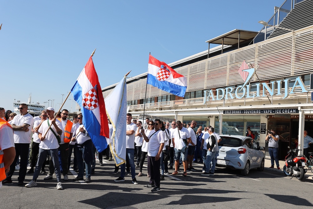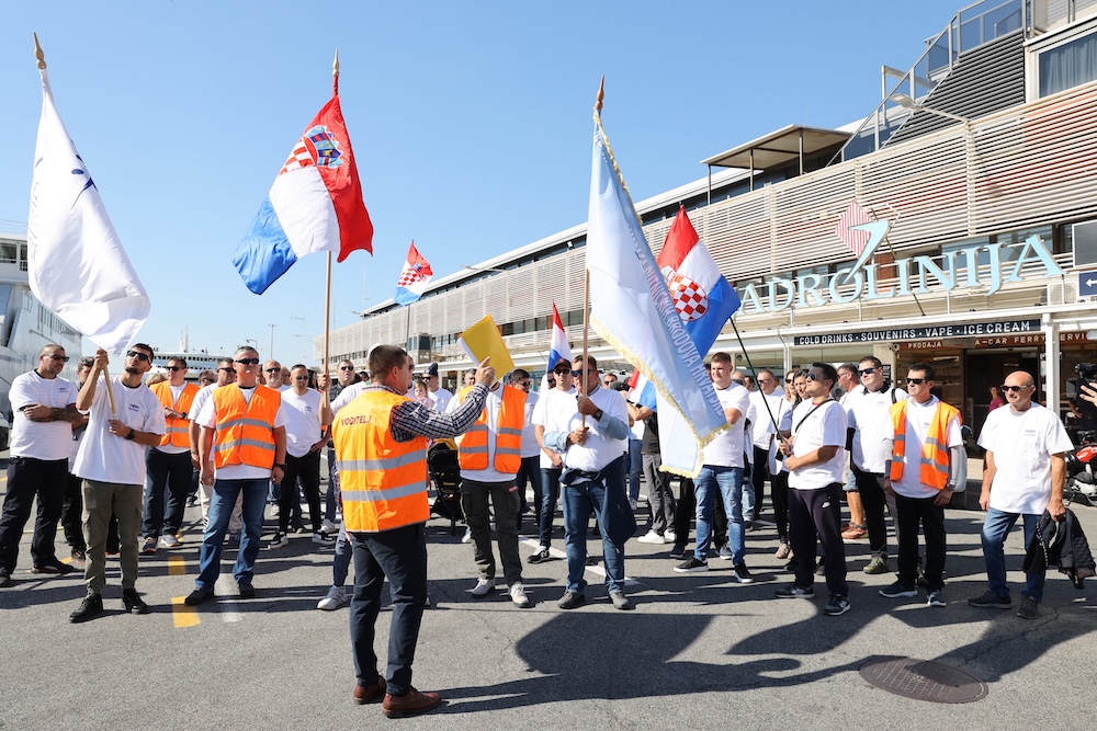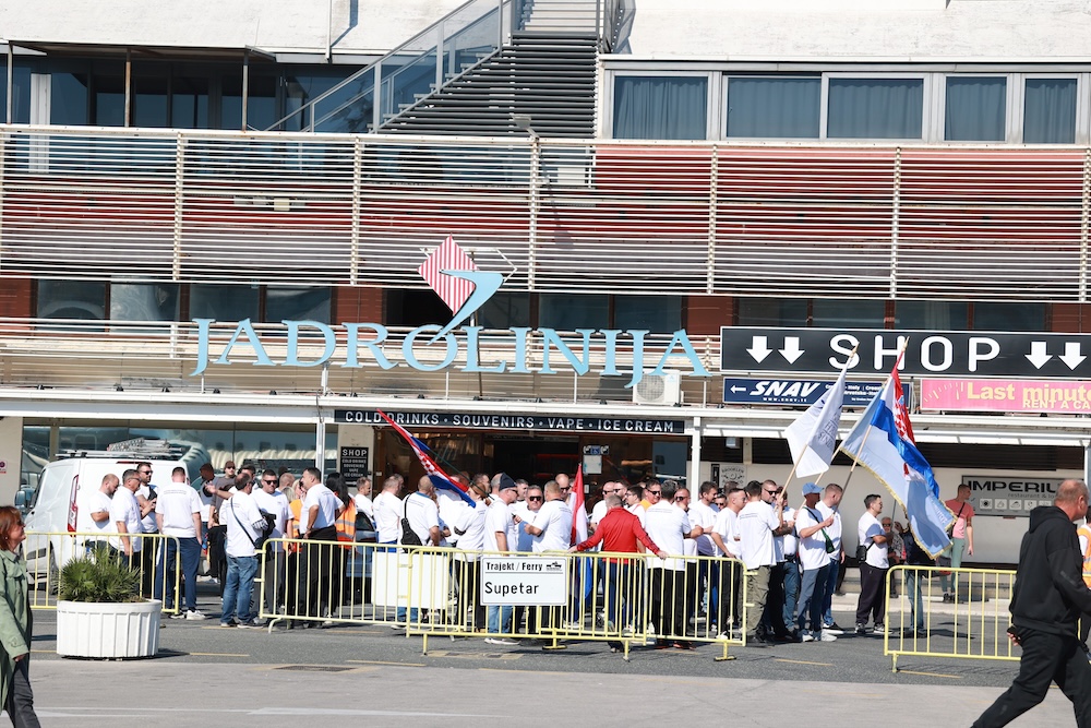 Mirnim prosvjedom u trajektnoj luci radnici Jadrolinije izrazili su svoje nezadovoljstvo načinom na koji je nova katamaranska linija Split - Supetar dodijeljena privatnom brodaru. U ime djelatnika, obratio se predsjednik Glavnog odbora Nezavisnog sindikata Nedjeljko Bulić.