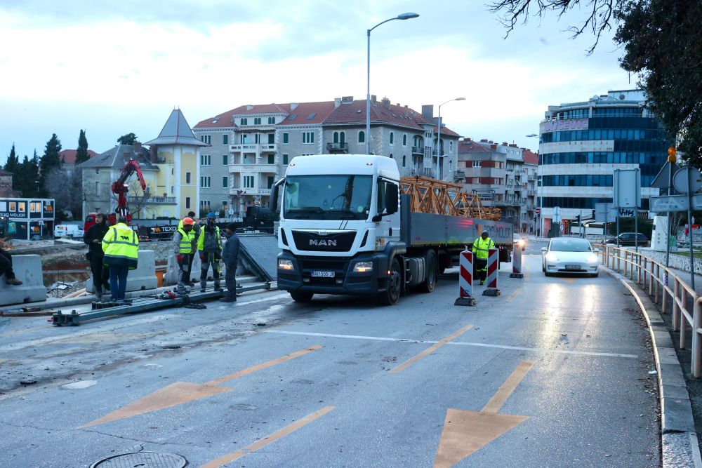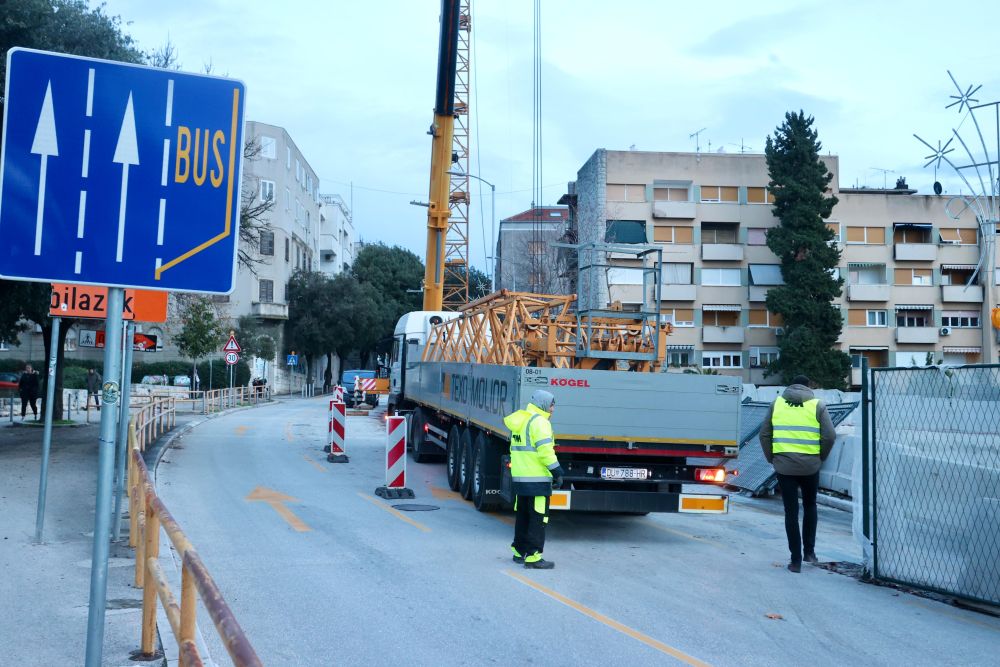 Vozi jednom trakom dok se ne postavi dizalica na prvom dijelu ulice, otprilike 200 metara.