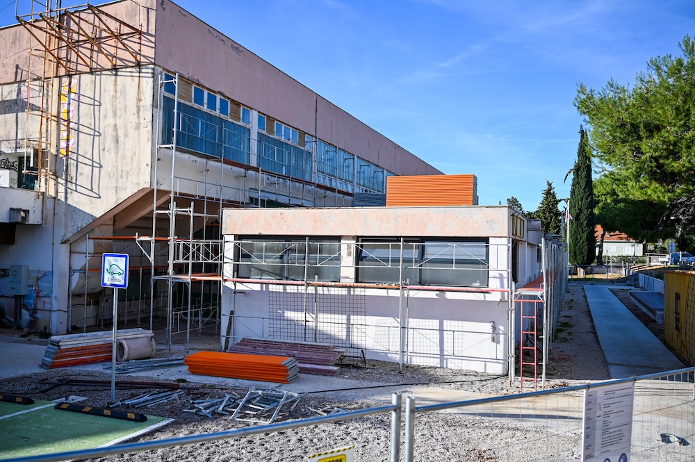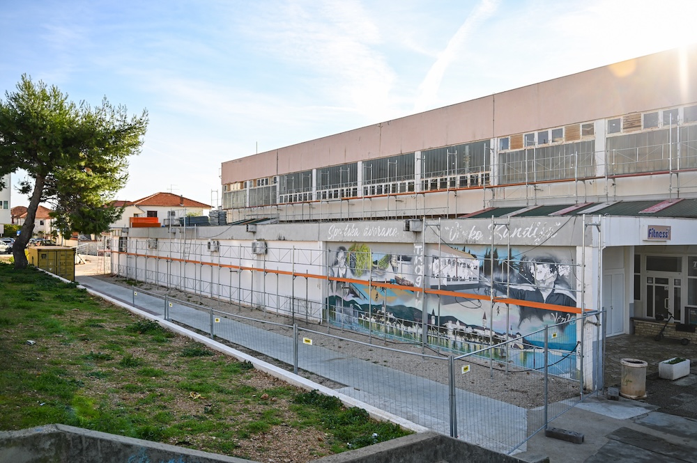 Nedaleko Starčevićeve, na staroj sportskoj dvorani postavila se skela te se radi na čišćenju fasade kako bi se mogla postaviti nova sa suvremenim izolacijskim slojevima. Postojeći ventilacijski sustav rastavlja se i bit će zamijenjeni novim štedljivim sustavom. Uzete su mjere za novu stolariju koja je također predviđena obnovom. U narednim danima kraj dvorane će doći velika dizalica s kranom kojom će se raditi na obnovi krova.