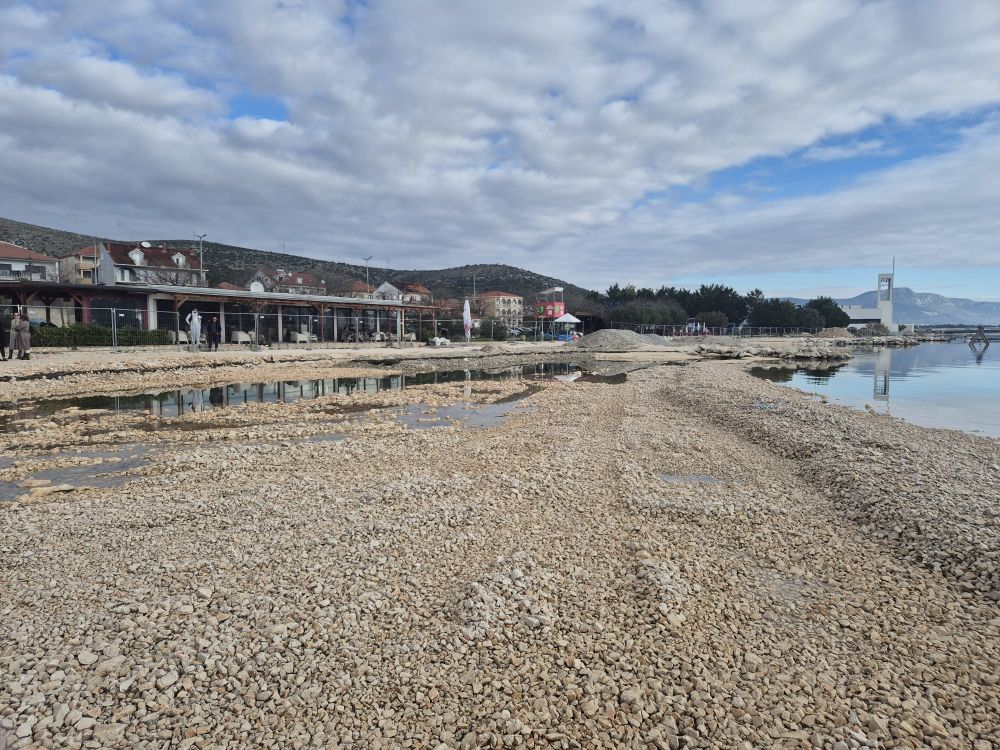'U tijeku su radovi na uređenju još 310 metara šetnice čime ćemo zaokružiti cjelinu od kamenog mosta pa skoro do novog čiovskog mosta. Radi se o jako zahtjevnom inženjerskom zahvatu jer su uključeni i podmorski radovi, a tlo je ovdje muljevito. Došli smo obići radove i vidjeti kako sve napreduje. Dinamika je prihvatljiva, ali ipak smo apelirali da se dio radova ubrza. Plaža mora biti spremna do sezone', istaknuo je gradonačelnik Ante Bilić.