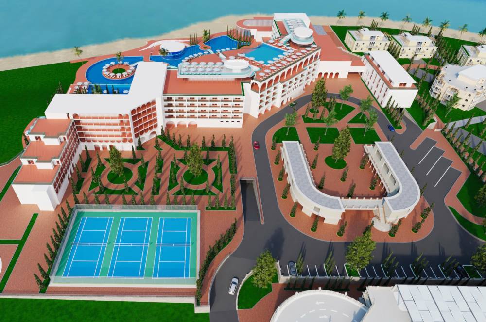 Cjelokupni kompleks predviđen je kao samoodrživ sustav s vlastitom fotonaponskom elektranom snage 1,43 MW, koja se sastoji od 19 krovnih i 11 fasadnih polja ukupne površine 6250 kvadratnih metara te godišnje proizvodi više od 1,5 milijuna kilovatsati električne energije. Središnji dio resorta čini hotelski kompleks kapaciteta 330 kreveta. Hotel uključuje jednu rezidencijalnu jedinicu od 180 četvornih metara, četrdeset apartmana površine 80 četvornih metara te ukupno 128 hotelskih soba, s ukupnom neto površinom smještaja od približno 8500 četvornih metara. U resortu je isplanirano šest restorana, osam barova, ljetno kino, kongresni centar, saune, teretane, pa čak i zdravstvena klinika i centar hitne pomoći.