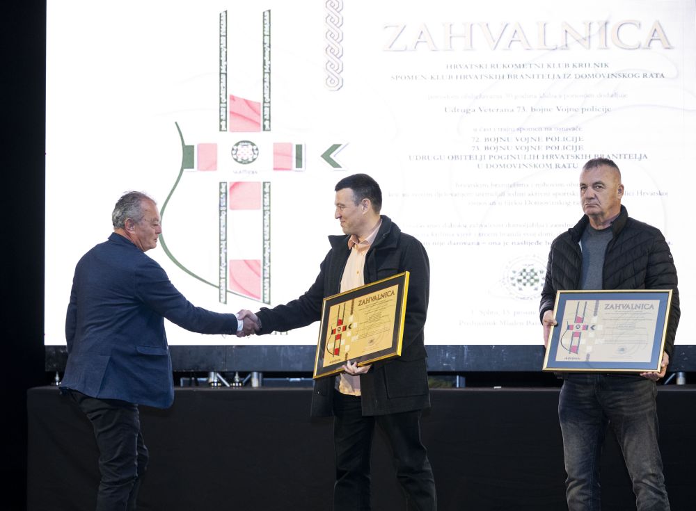 Poseban trenutak večeri bio je Krilnikov protokol zahvalnosti, tijekom kojeg su dodijeljene zahvalnice osnivačima kluba, udrugama koji su svojim djelovanjem dali značajan doprinos jačanju zajedništva hrvatskih branitelja i očuvanju uspomene na Domovinski rat. Zahvalnice su uručene Zlatku Čipčiću, predsjedniku Udruge branitelja veterana Vojne policije 72. bojne, Draženu Ivankoviću, predsjedniku Udruge veterana 73. bojne Vojne policije, te Jeli Eranović, predsjednici Udruge udovica hrvatskih branitelja Domovinskog rata Republike Hrvatske – Split. Tom je prigodom predsjednik Krilnika Mladen Bašić uputio posebnu zahvalu osnivačima, istaknuvši kako sloboda u kojoj danas živimo nije darovana, nego je naslijeđe herojske baštine Domovinskog rata.