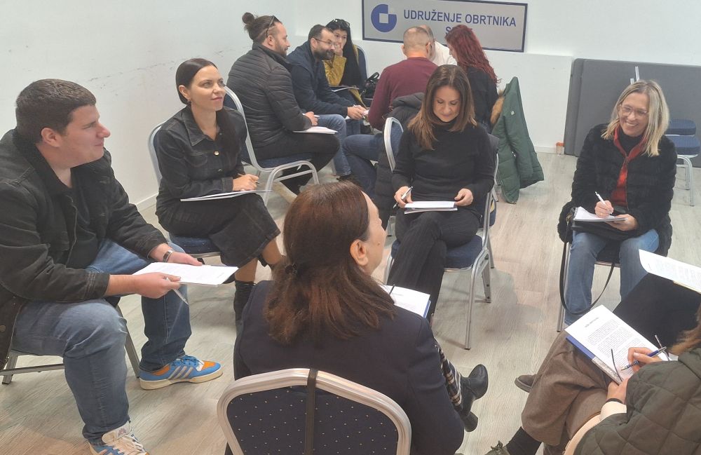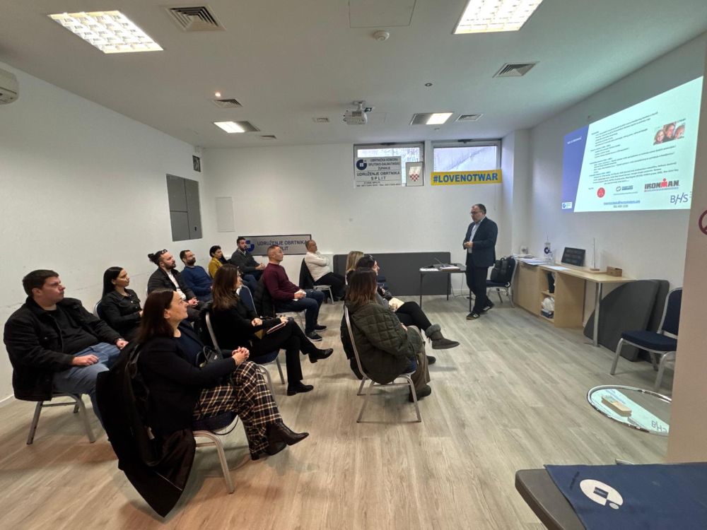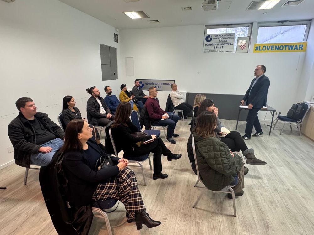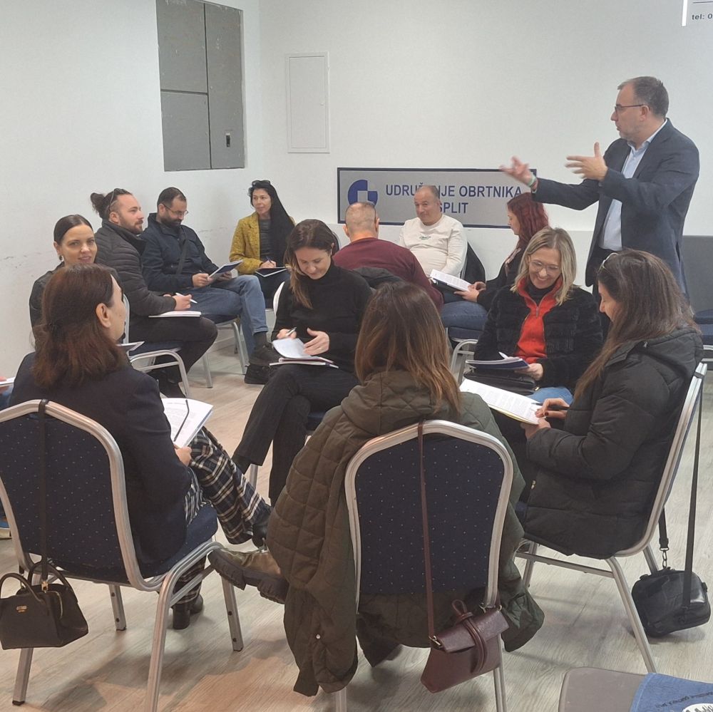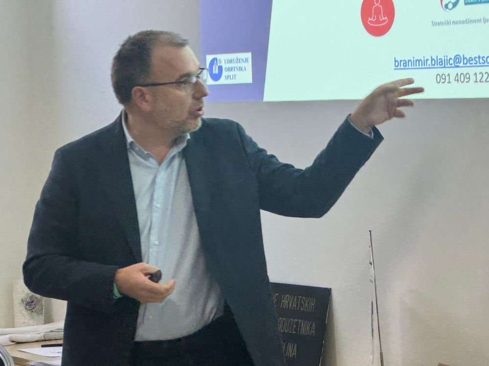 U prostorijama Udruženja obrtnika Split danas je održana stručna radionica 'Vještine vodstva i komunikacije za obrtnike', namijenjena jačanju kompetencija i učinkovitijem upravljanju poslovnim izazovima u obrtništvu. Program je vodio predavač i trener Branimir Blajić, poznat po praktičnom pristupu i metodama koje se mogu odmah primijeniti u radu.