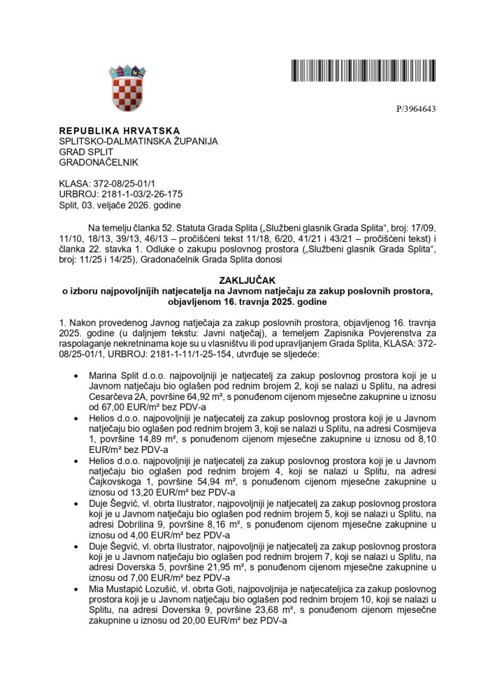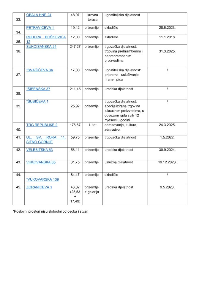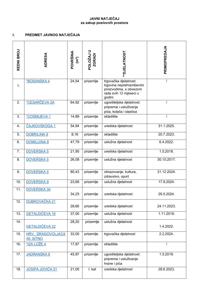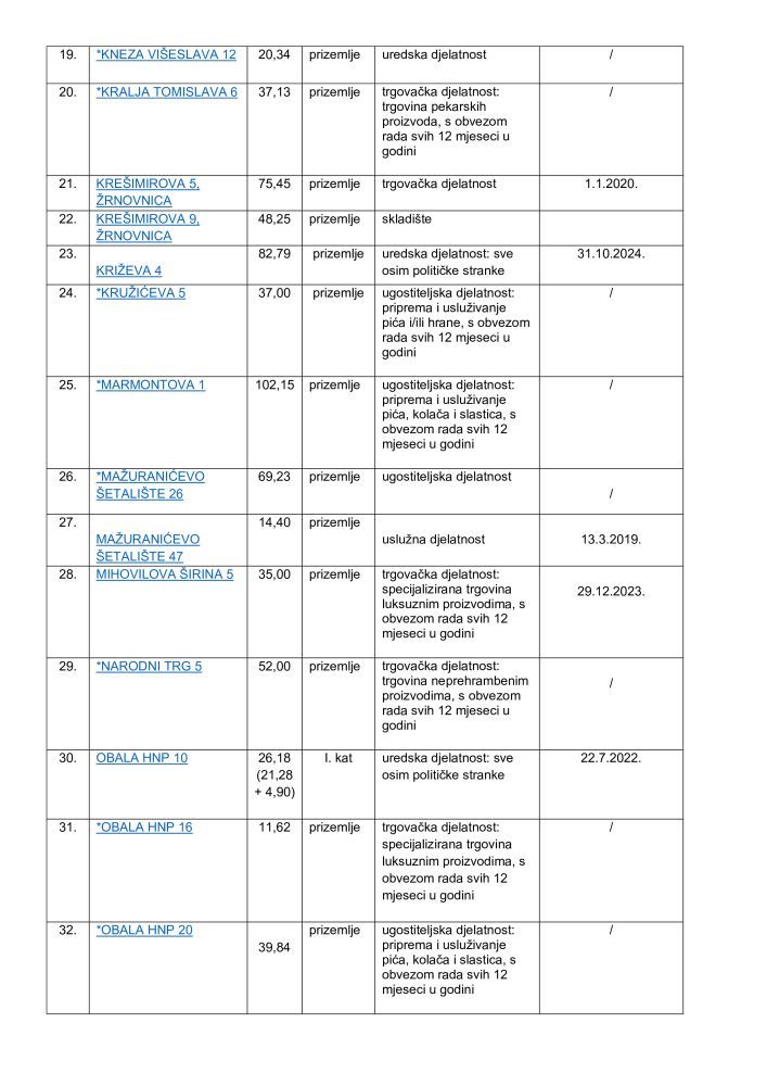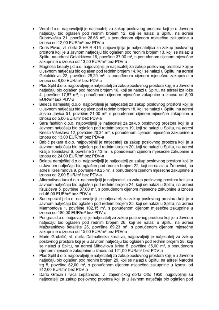 Pogledajte cijeli spisak zakupaca i licitirane cijene po metru kvadratnom: