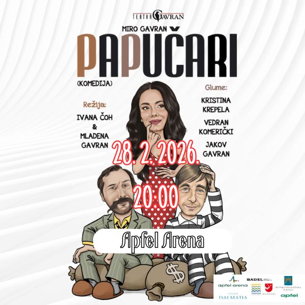 Komedija 'Papučari' stiže u Makarsku, u Apfel Arenu. Izvedba predstave zakazana je za subotu, 28. veljače, u 20 sati.