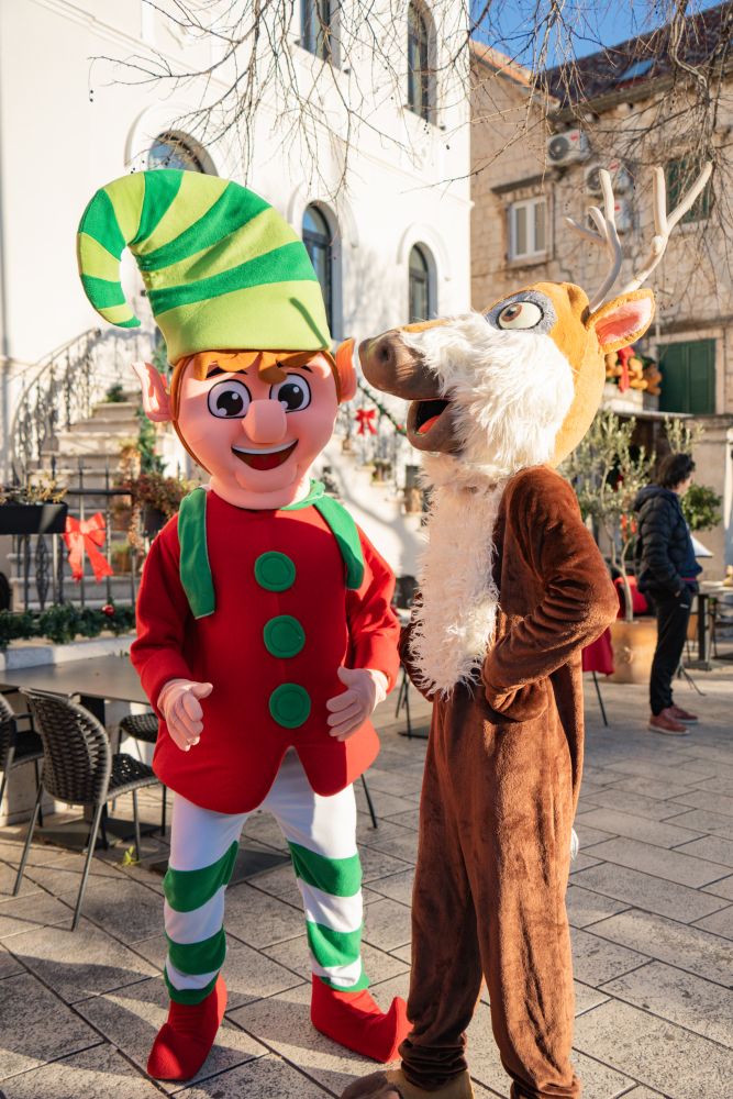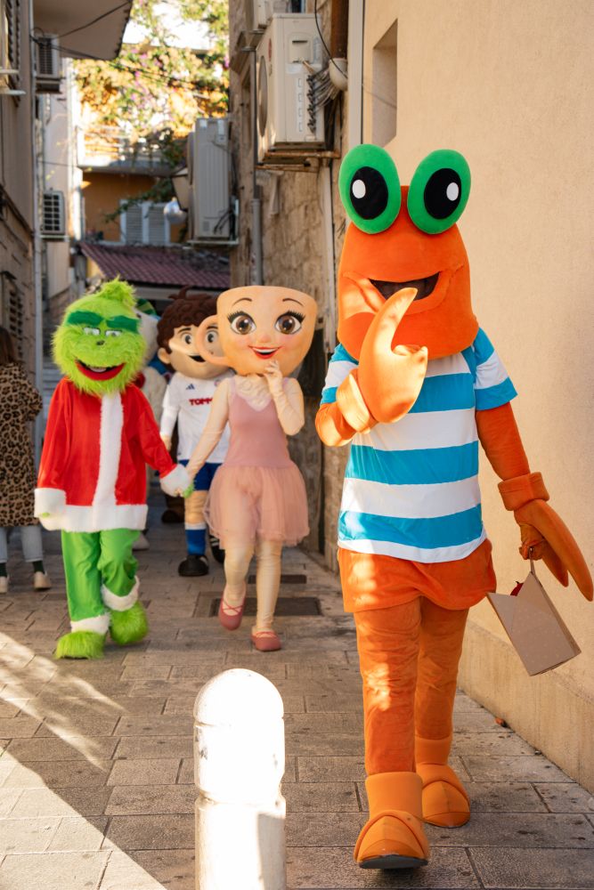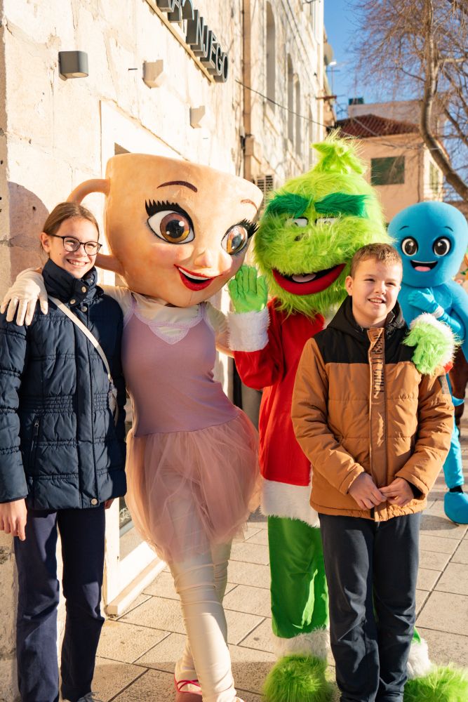 U šarenoj povorci i zajedničkom programu sudjelovalo je čak 16 maskota, prijatelja i partnera sponzora, koje su kroz mali defile gradom i nastup na pozornici stvorile pravu blagdansku bajku. Djeca su imala priliku družiti se sa Sobom, Apfelkom, Vilenjakom Perom, Linom, Grinčem, Ledo Medom, Ballerinom Cappuccinom, Mirami hobotnicom, Snjegovićem, Marom rakom, Kotanyi Mlincem, Medenjakom, Poli Dogom, Galelbom, Medom i glavnom zvijezdom dječakom Ricom. Maskote su neumorno plesale, pozirale za fotografije i širile veselje, pretvarajući Kačićev trg u mjesto iskrene dječje sreće i toplog obiteljskog zajedništva.