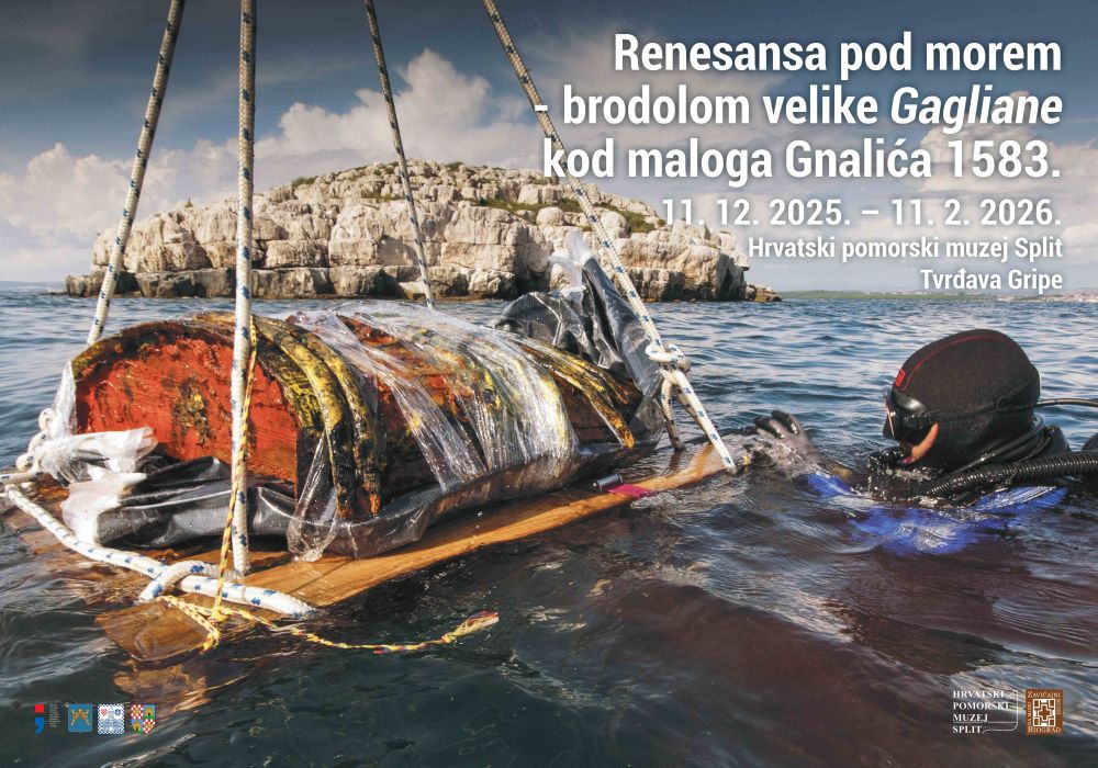 Hrvatski pomorski muzej Split i Zavičajni muzej Biograd na Moru organiziraju izložbu 'Renesansa pod morem - brodolom velike Gagliane kod maloga Gnalića 1583.', autorica Petre Radić i Vinke Klišmanić. Otvorenje će se održati u četvrtak, 11. prosinca 2025., u 18 sati u Hrvatskom pomorskom muzeju Split na Tvrđavi Gripe.