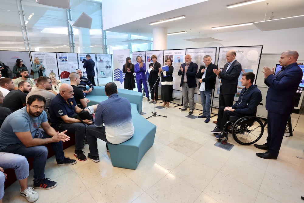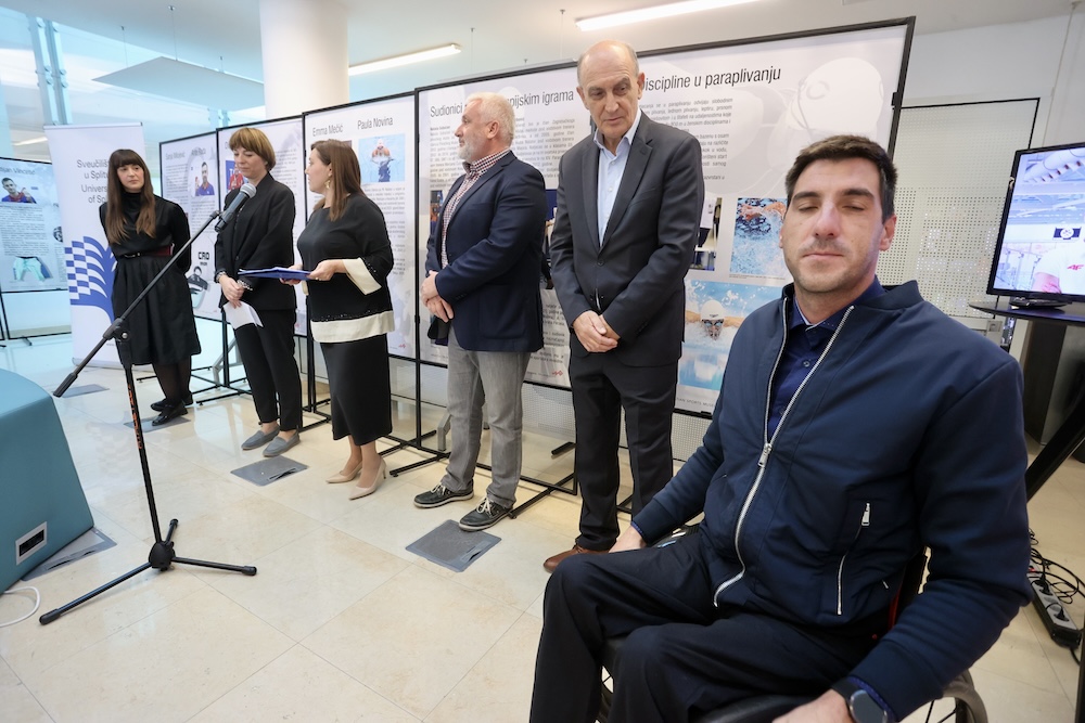 - Kad je prikazan film o Mihovilu Španji, iskreno sam zaplakao. Svi koji smo tada bili prisutni vidjeli smo vrhunskog sportaša, a njegova priča ostavila je poseban dojam na sve nas - kazao je prorektor Maleš čestitajući na osvajanju srebrne medalje na Svjetskom prvenstvu u Singapuru našem proslavljenom paraplivaču Dinu Sinovčiću koji je nazočio otvaranju izložbe. Prorektor Maleš je iskazao vjeru da će Sinovčić svojim iskustvom iz bazena i stručnim znanjem stečenim kroz studiranje na splitskom Kineziološkom fakultetu donijeti novi vjetar hrvatskom paraplivanju.