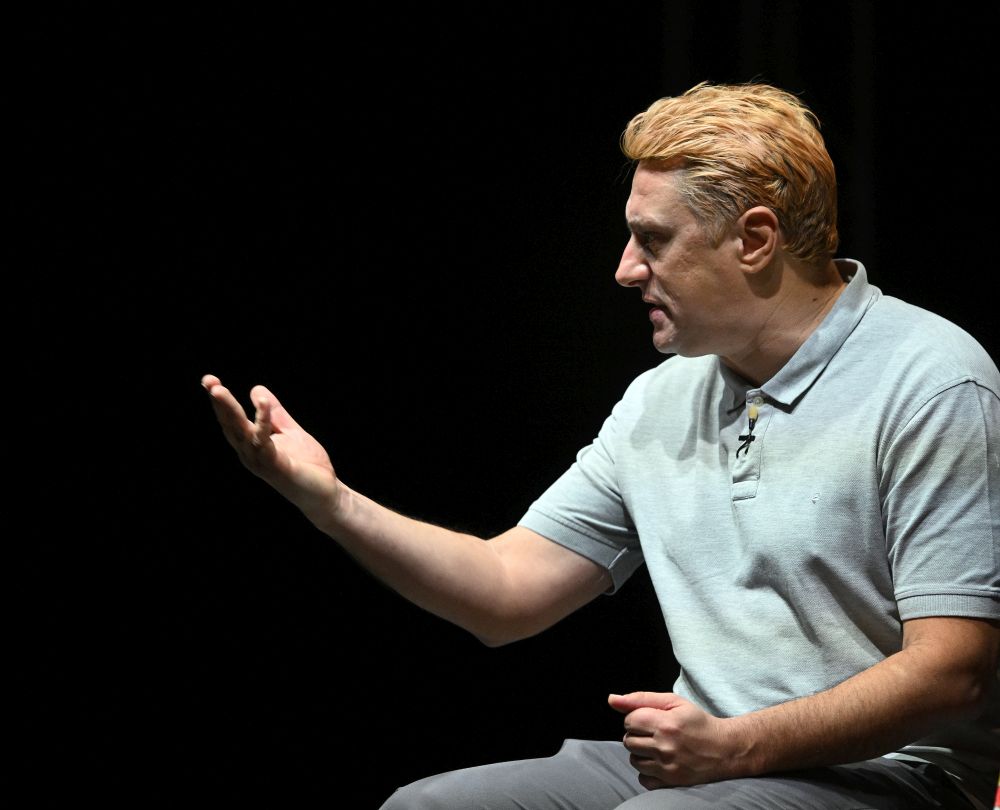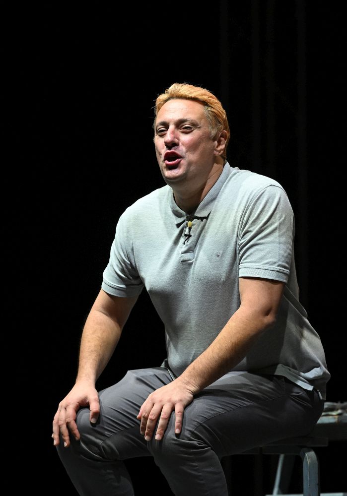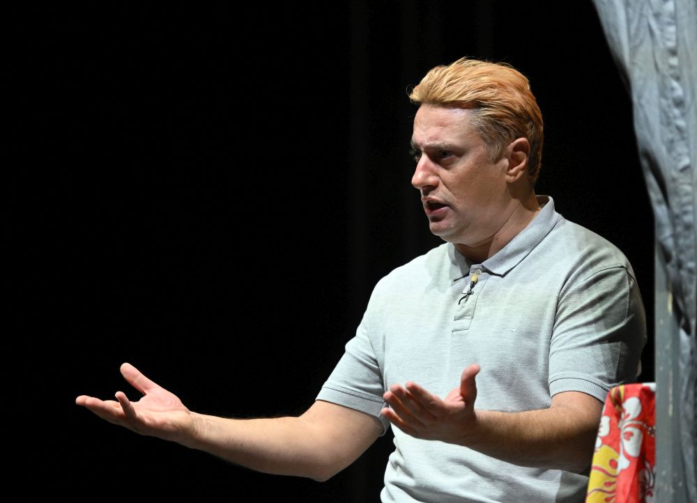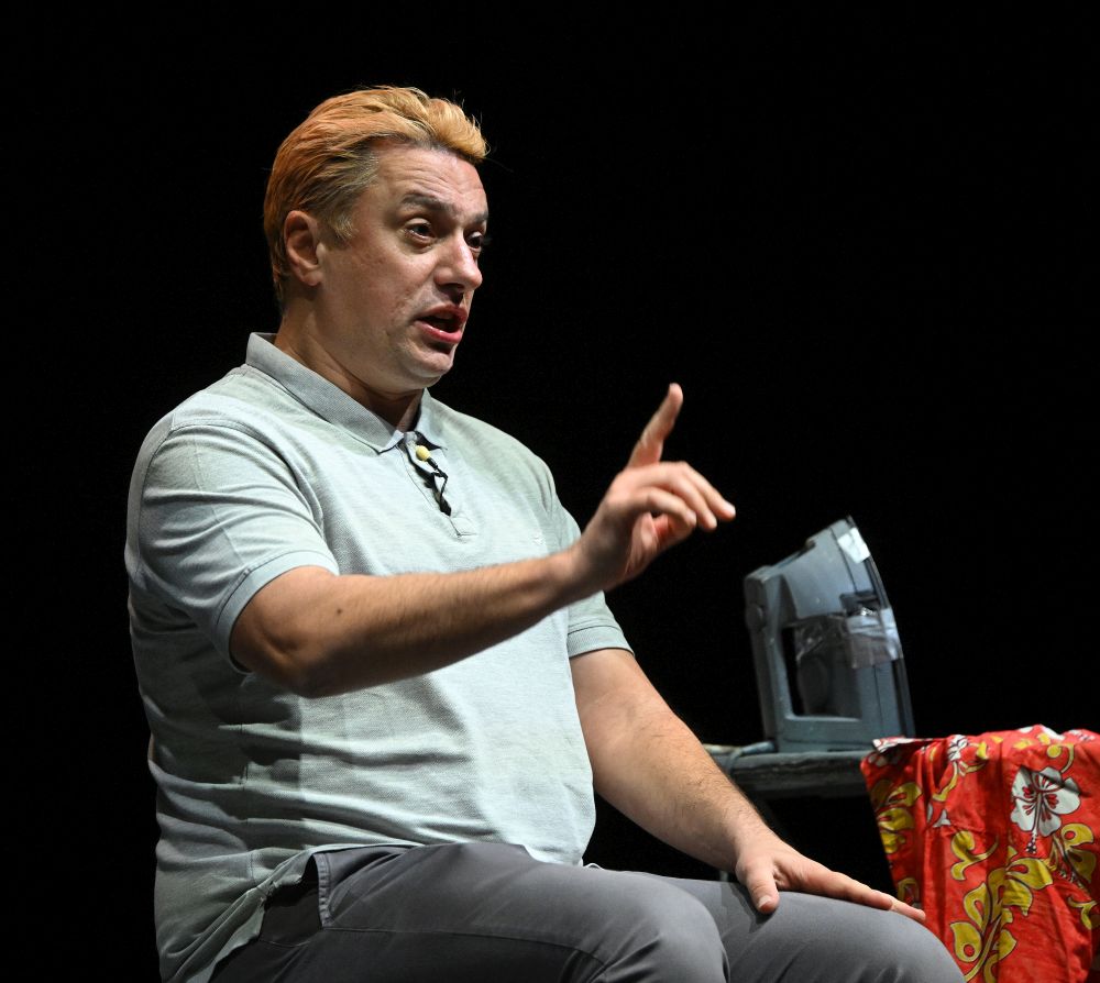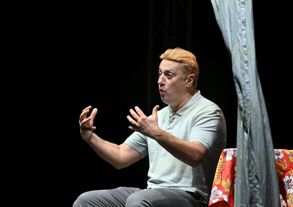 Glumac Andrija Milošević večeras je u splitskom klubu Porat oduševio publiku komedijom 'Idem putem pa zagrlim drvo', koju je napisao Miodrag Karadžić, a koja je premijerno izvedena 2019. godine u Teatru na Brdu.