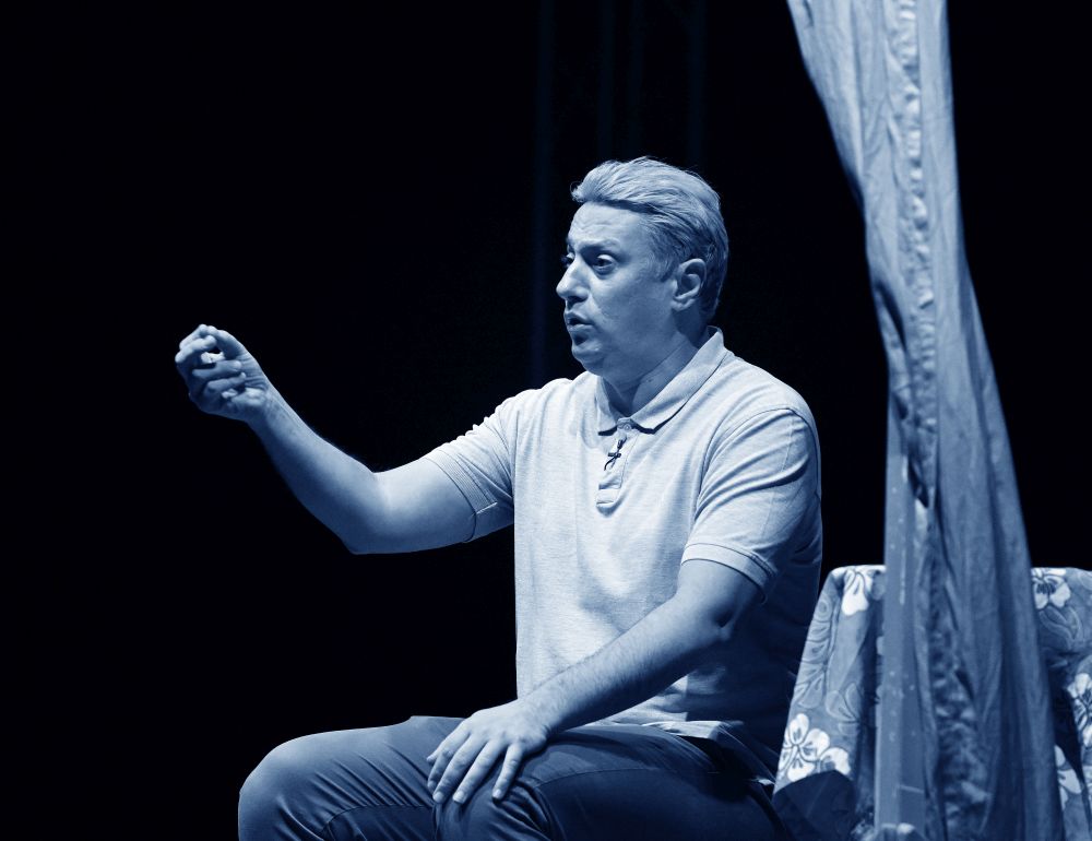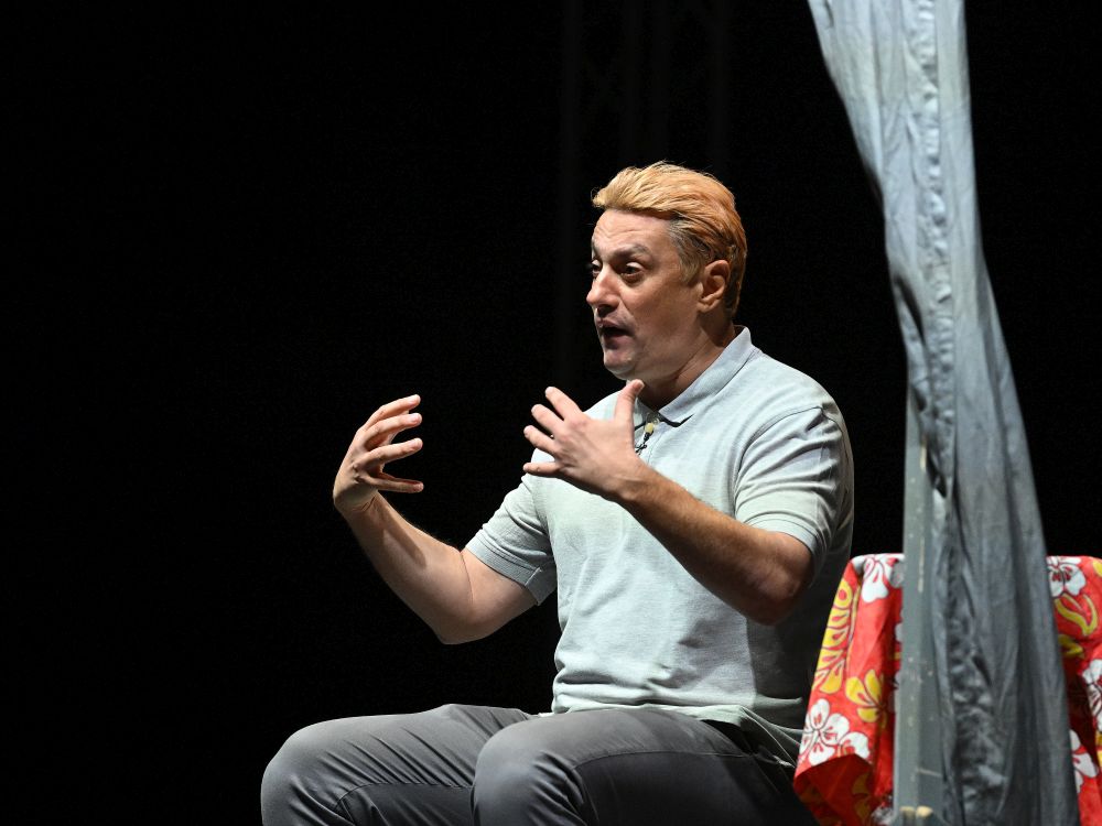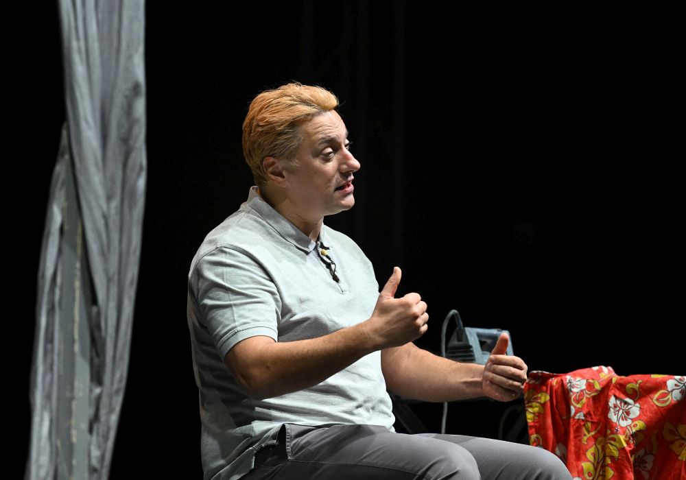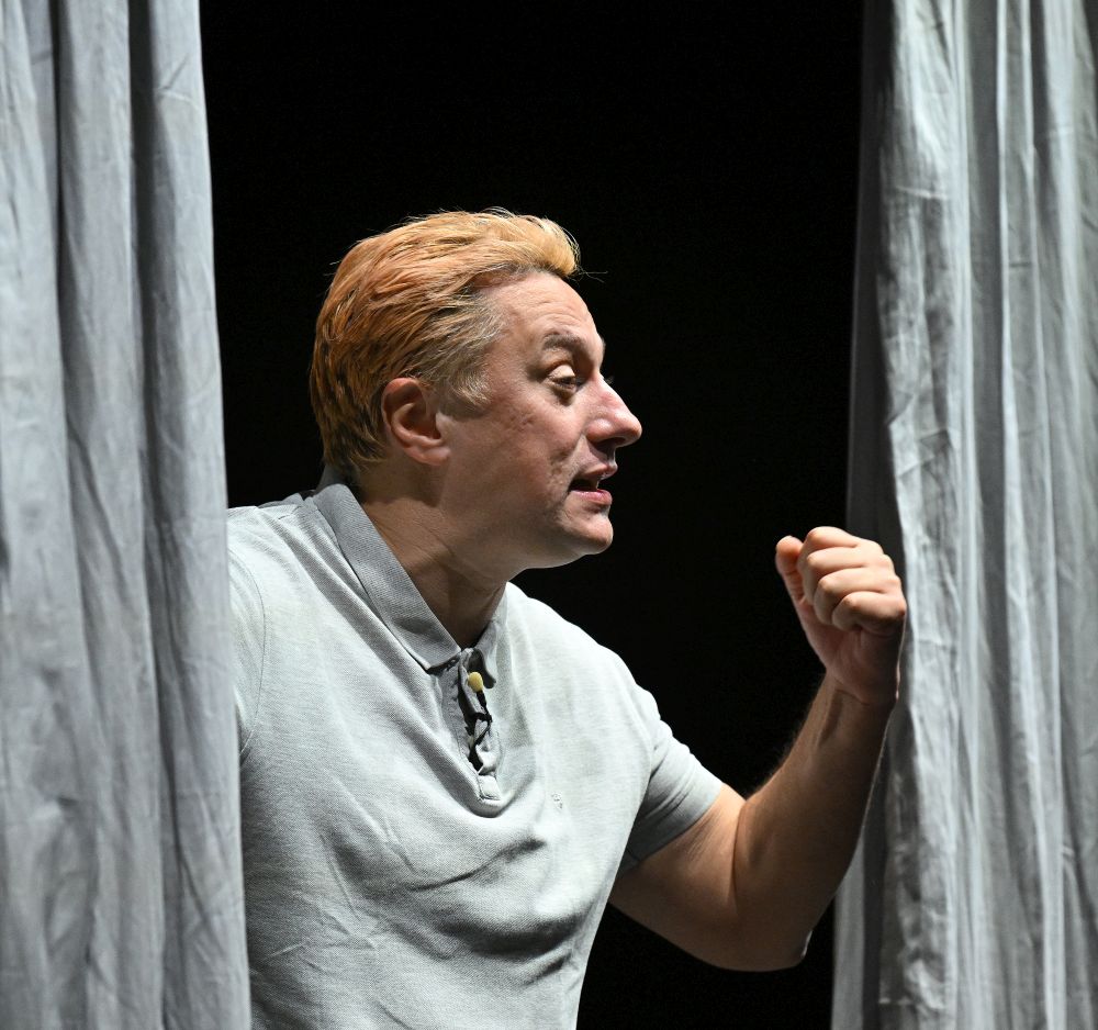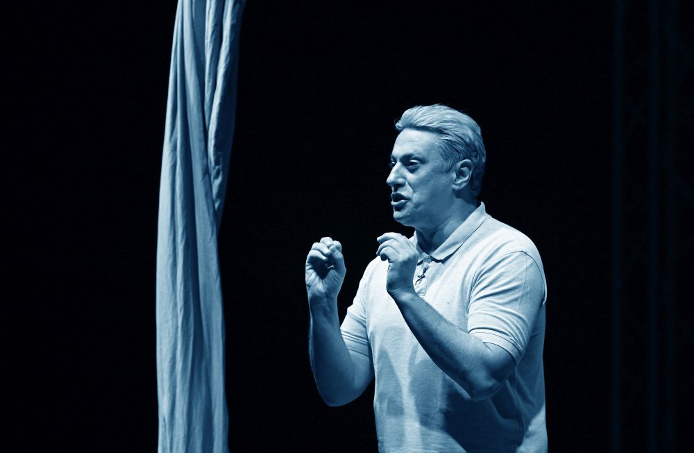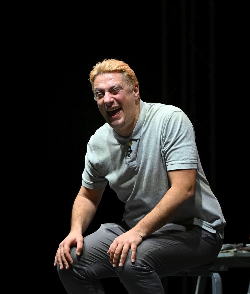 Glumac Andrija Milošević večeras je u splitskom klubu Porat oduševio publiku komedijom 'Idem putem pa zagrlim drvo', koju je napisao Miodrag Karadžić, a koja je premijerno izvedena 2019. godine u Teatru na Brdu.