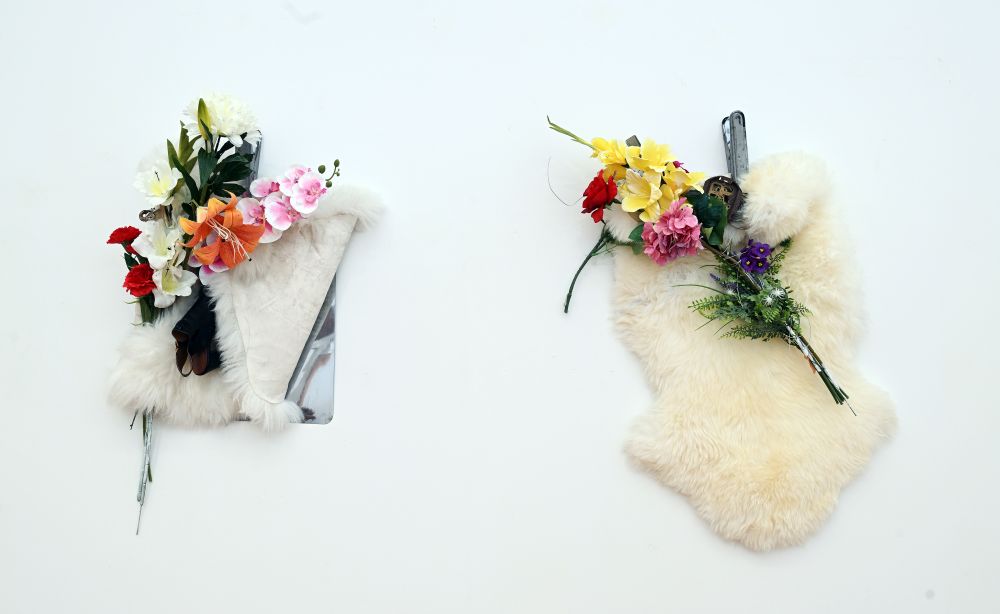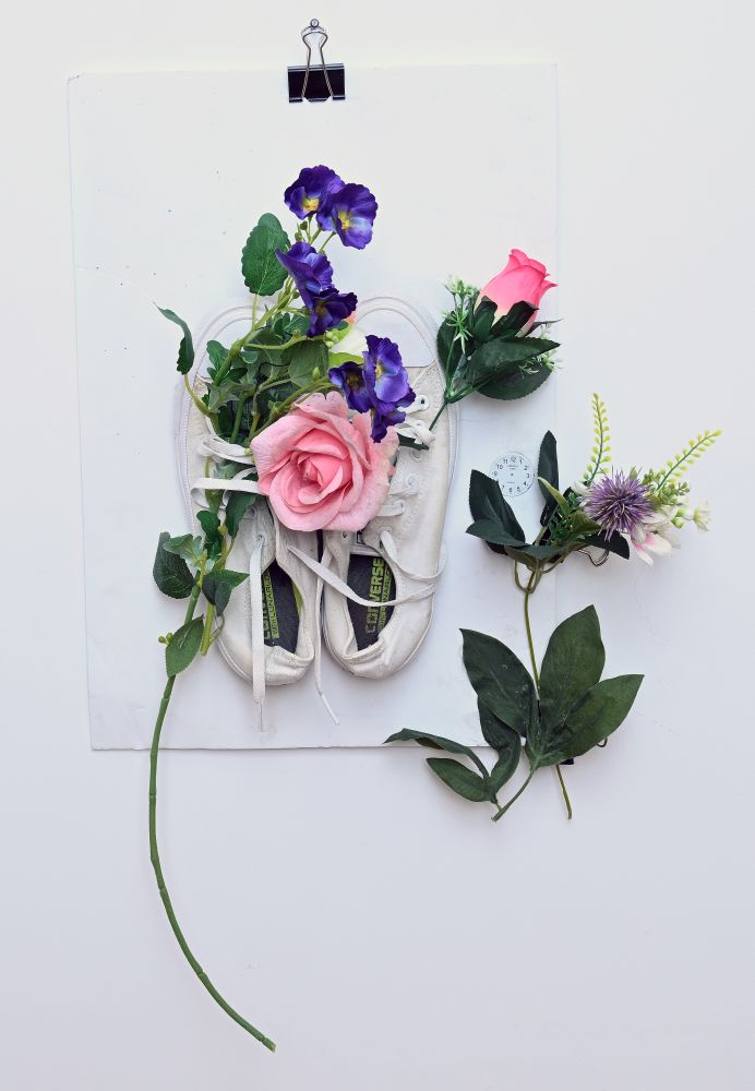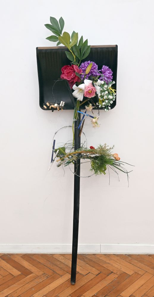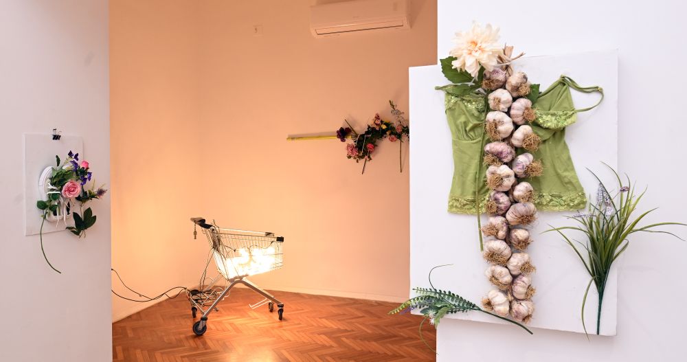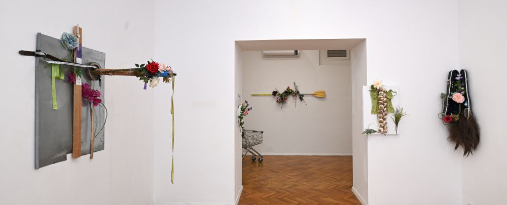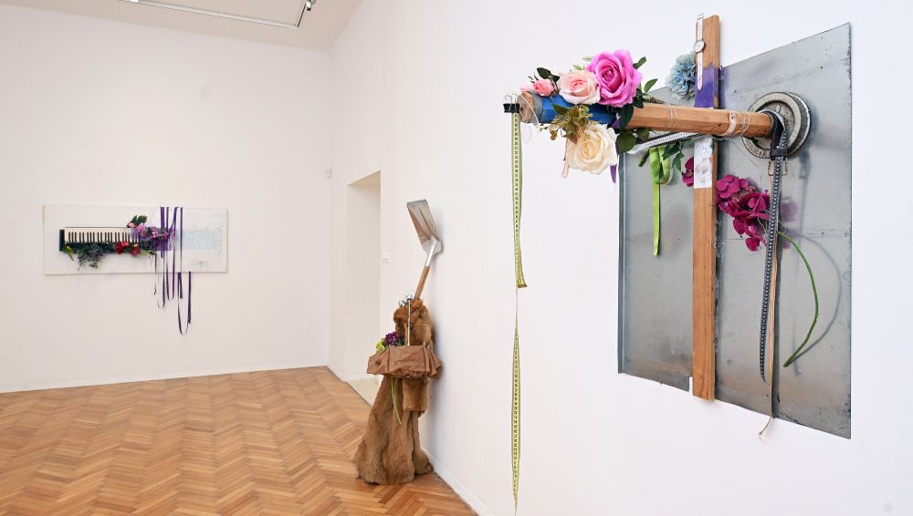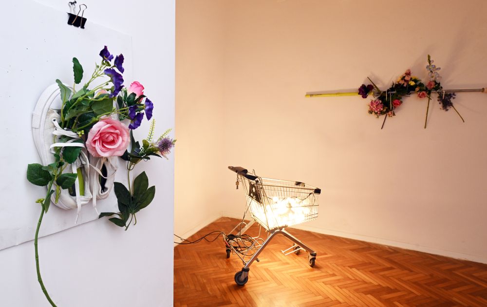 Postav se nadovezuje na Golubov raniji rad i izložbu iz 2022. godine, zadržavajući prepoznatljivu logiku njegovog stvaralaštva, u kojem reciklaža, prenamjena i aproprijacija imaju središnju ulogu. Umjetno cvijeće koje je nekad činilo dominantni 'cvjetni slap' sada se pojavljuje u novoj ulozi – kao motiv prisutan u većini radova, od asamblaža do objekata izrađenih od odjevnih predmeta.