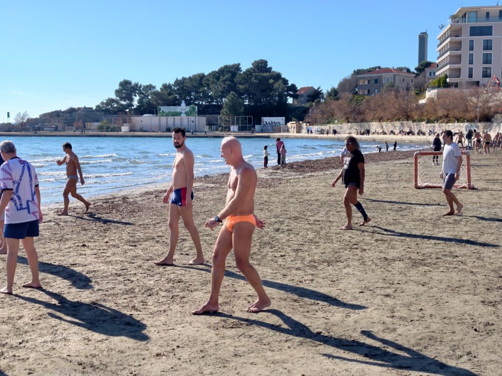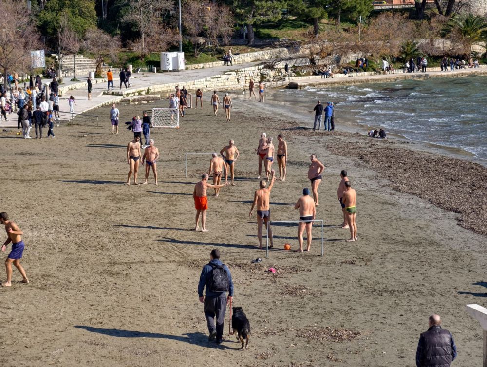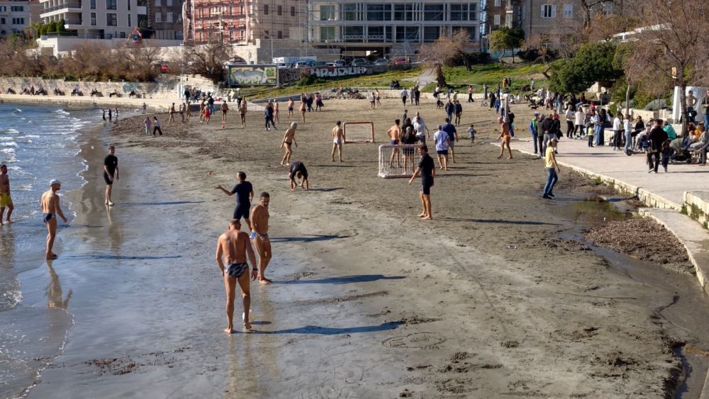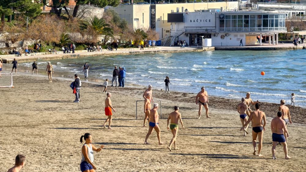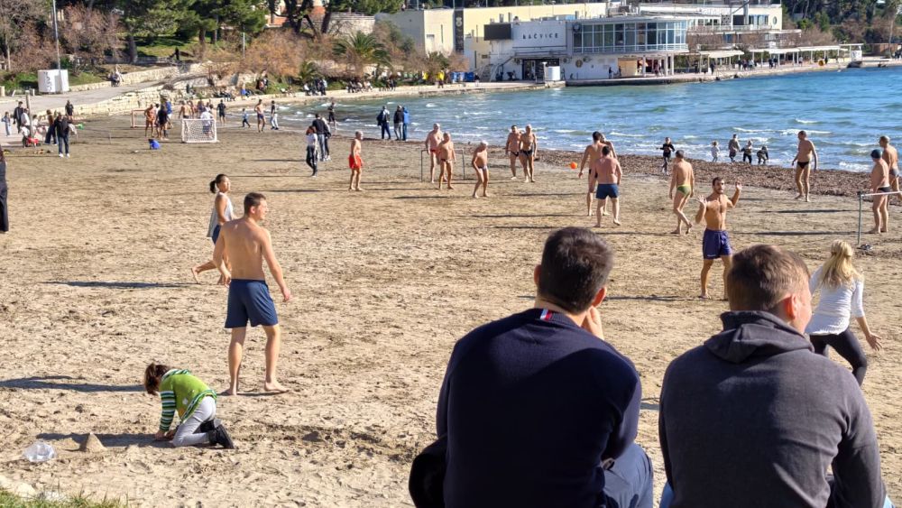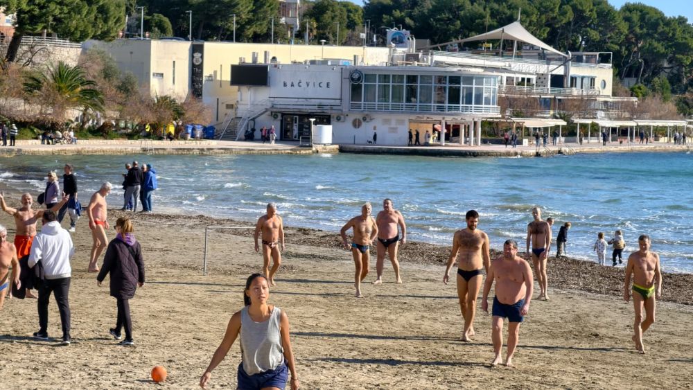 Lijepi i sunčani nedjeljni dan mnogobrojni Splićani su iskoristili za šetnju i kupanje na potezu između Bačvica i Firula. Samo malobrojni su ulazili dublje u more čija je temperatura bila izjednačena sa temperaturom zraka - 13°C.