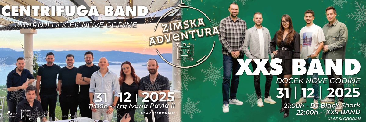 'Zimska Adventura u Trogiru ulazi u svoju završnicu! Sutra i u četvrtak očekuje nas bogat glazbeni program. Sutra u jutarnjim satima posjetitelje očekuje sad već tradicionalni jutarnji doček uz Centrifuga bend, dok će nas u najluđu noć u godini, s početkom u 22 sata, uvesti XXS bend!