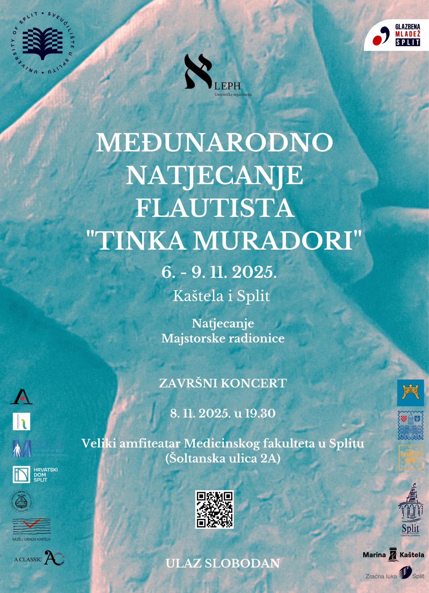 Koncert nagrađenih sudionika četvrtog međunarodnog natjecanja flautista 'Tinka Muradori' održat će se u subotu, 8. studenog s početkom u 19.30 sati u velikom amfiteatru Medicinskog fakulteta, Šoltanska 2, Split.