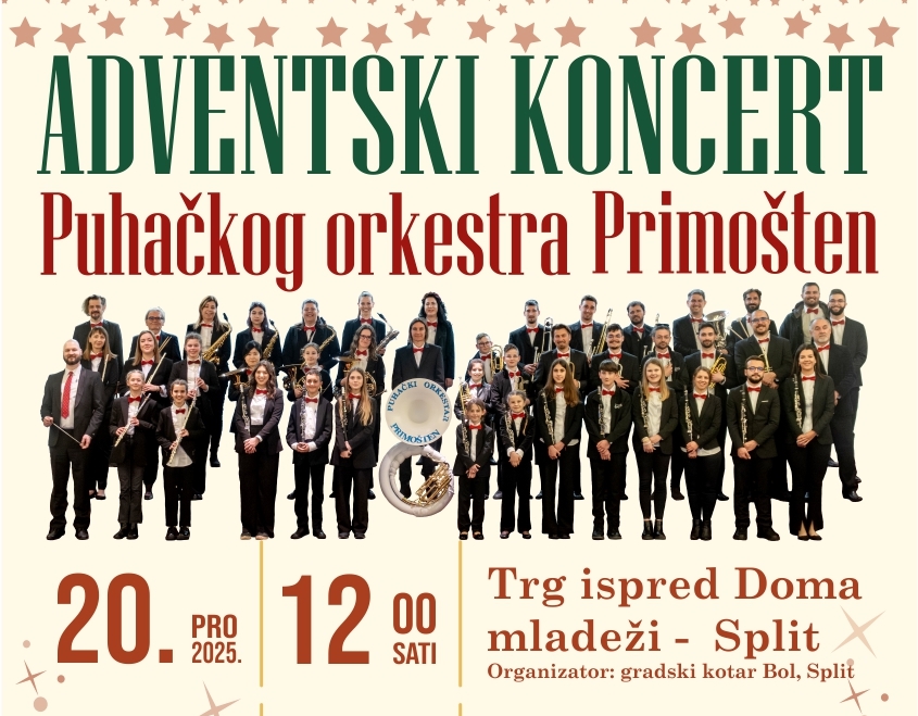 U subotu, 20. prosinca 2025., u 12 sati na platou ispred Doma mladeži u organizaciji GK Bol i uz podršku MKC-a gostuje Puhački orkestar Primošten.
