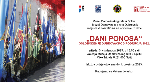 Muzej Domovinskog rata u Splitu i Muzej Domovinskog rata Dubrovnik pripremaju izložbu 'Dani ponosa - Oslobođenje dubrovačkog područja 1992.' autorice Varine Jurice Turk, ravnateljice Muzeja Domovinskog rata Dubrovnik.