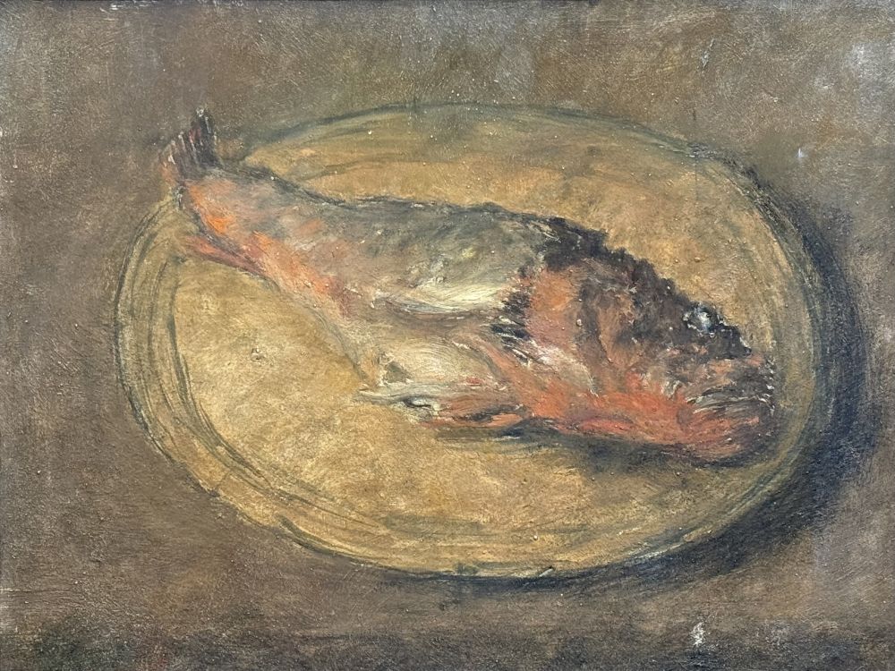 Na poleđini slike autor je vlastoručno zabilježio godinu nastanka - ratnu 1942. godinu. Motiv ribe u Vidovićevu se opusu javlja od 1941. godine te ostaje rijedak, budući da je umjetnik bio skloniji mrtvim prirodama sastavljenima od predmeta kulturno-umjetničkog karaktera. Sačuvano je tek nekoliko slika s prikazima škarpine, što ovu akviziciju čini osobito vrijednom.