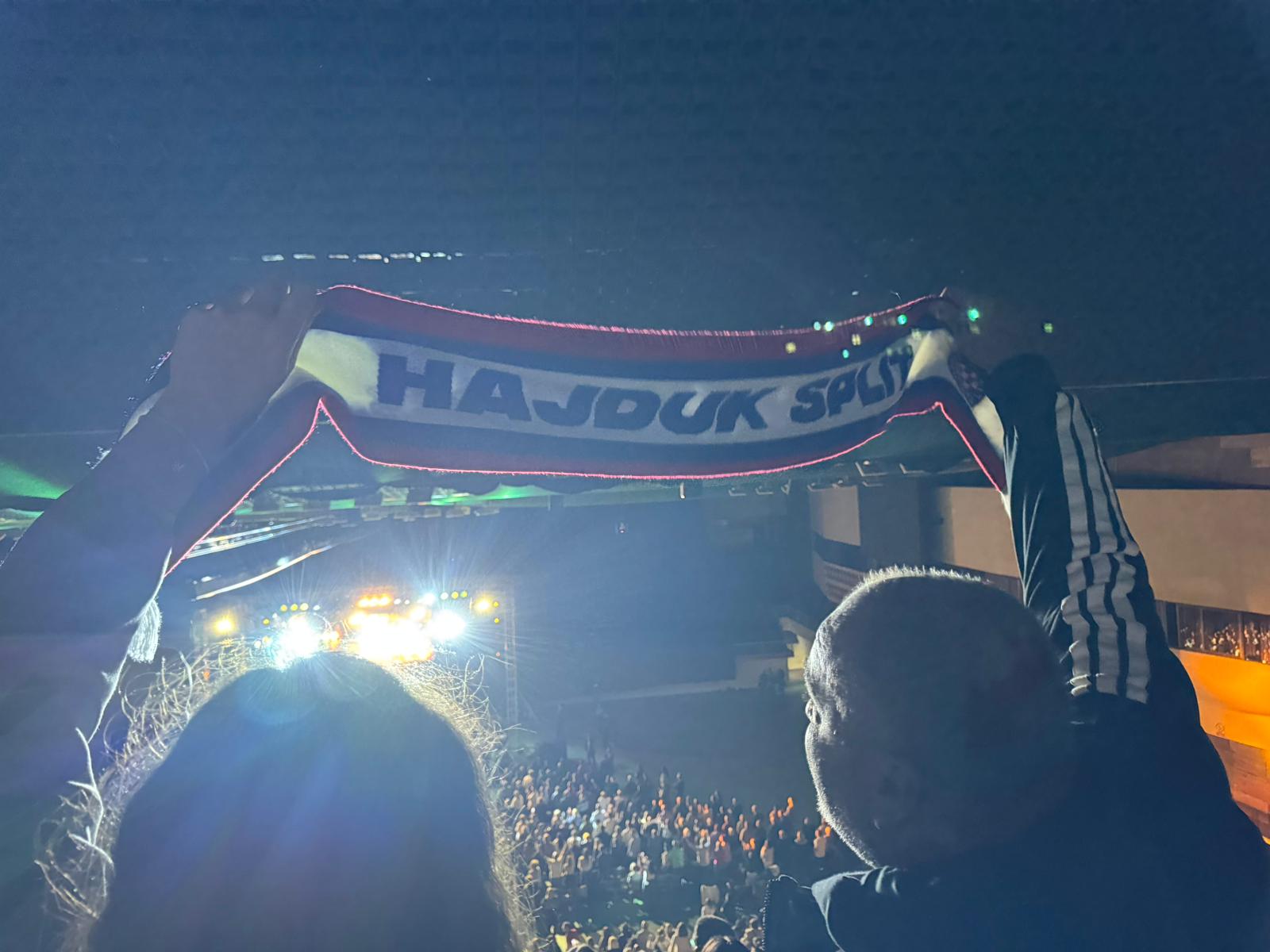 U tom trenutku zavladala je prava hajdučka atmosfera – publika se digla na noge, zapjevala i pljeskala, slaveći pobjedu Hajduka nad Osijekom ostvarenu neposredno prije koncerta.