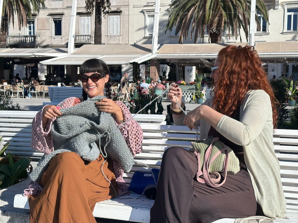 Dok sjedimo na klupici na rivi, nekoliko starijih prolaznica zastaje i s osmijehom je promatra. U njihovim pogledima vidi se prepoznavanje, kao da u mladoj ženi s kukicom vide odraz vlastitih ruku iz nekog drugog vremena. Nikolina se samo nasmije i nastavlja raditi.